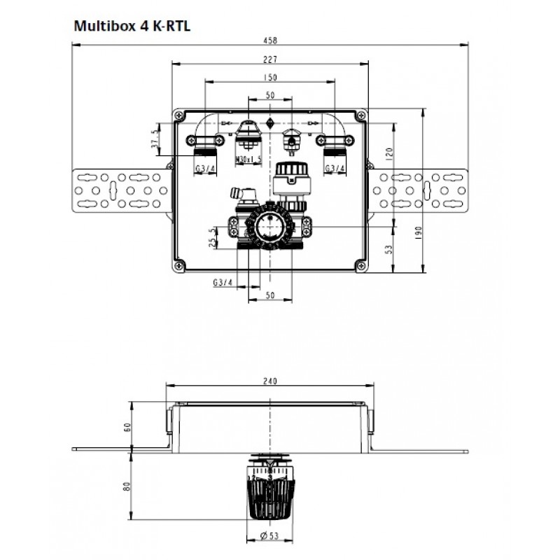 Multibox 4 je určen pro regulaci podlahového nebo stěnového vytápění nebo pro kombinaci podlahového vytápění a vytápění otopnými tělesy. Díky dvěma uzavíracím ventilům, lze uzavřít přívodní i vratné potrubí. Kryt umožňuje korekci montážní pozice v rozsahu 6° na každou stranu. Uchycení krytu je skryto. Barevné provedení v bílé barvě nebo chrom. Základní box lze snadno upevnit do různých stavebních kontrukcí a kompenzovat hloubku uložení v rozmezí do 30 mm.