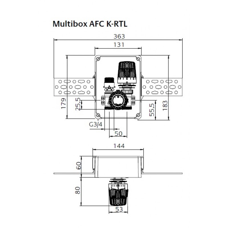 HEIMEIER Multibox AFC K-RTL s termost. ventilem a omezovačem teploty, bílý 9317-00.800Barva: kryt a termostatická hlavice K bílé (RAL 9016)