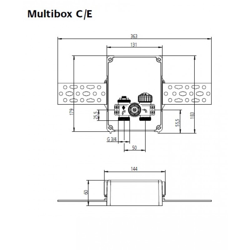 Multibox je určen pro regulaci podlahového nebo stěnového vytápění nebo pro kombinaci podlahového vytápění a vytápění otopnými tělesy. Kryt umožňuje korekci montážní pozice v rozsahu 6° na každou stranu. Uchycení krytu je skryto. Barevné provedení v bílé barvě nebo chrom. Základní box lze snadno upevnit do různých stavebních kontrukcí a kompenzovat hloubku uložení v rozmezí do 30 mm.