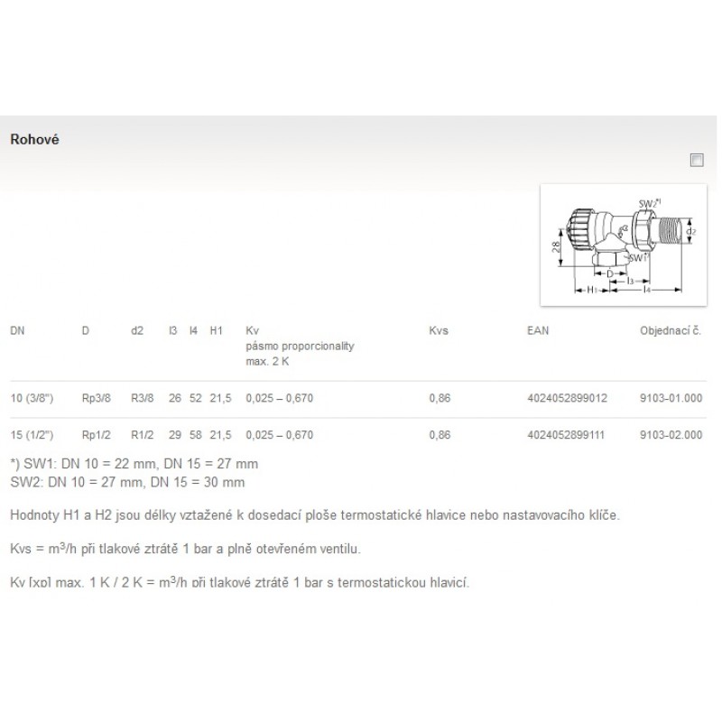 HEIMEIER rad. ventil s obráceným směrem toku 1/2", s nastavením, rohový 9103-02.000Provedení: s plynulým přesným nastavením (V-exact II)