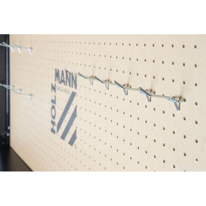 Dílenský stůl HOLZMANN WT06 je praktickým řešením do dílen, garáží i domácích pracovních prostorů. Díky stavebnicovému systému je montáž velmi jednoduchá. Velká pracovní deska z MDF uložená na stabilním plechovém podstavci zajišťuje pevnou a odolnou pracovní plochu. Součástí je děrovaná stěna s 20 háčky, které lze rozmístit dle potřeby pro přehledné uložení nářadí.