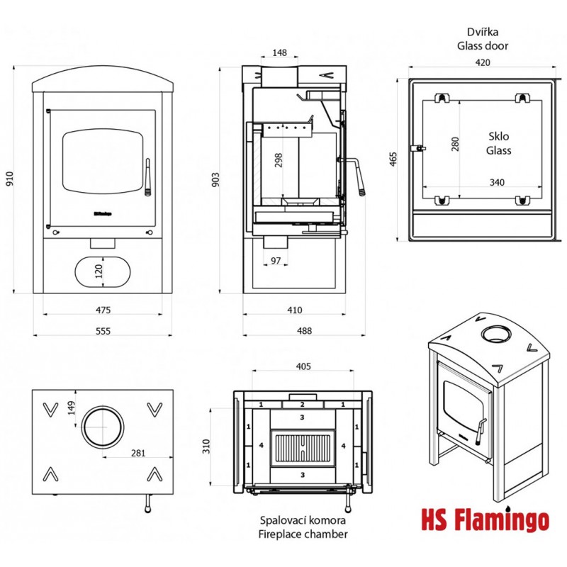 Rozměr topeniště (Š x V x H) 405 x 280 x 310 mm