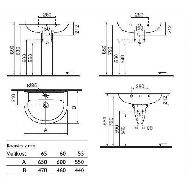 IDEAL Standard EUROVIT umyvadlo bez otvoru pro armaturu 60 x 46 cm V144201Bez otvoru pro armaturu.