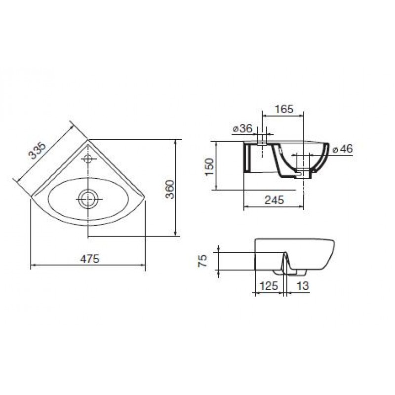 IDEAL Standard EUROVIT umývátko rohové 33,5 x 33,5 x 47,5 cm V220201Umyvátko určené do rohu s otvorem pro armaturu.
