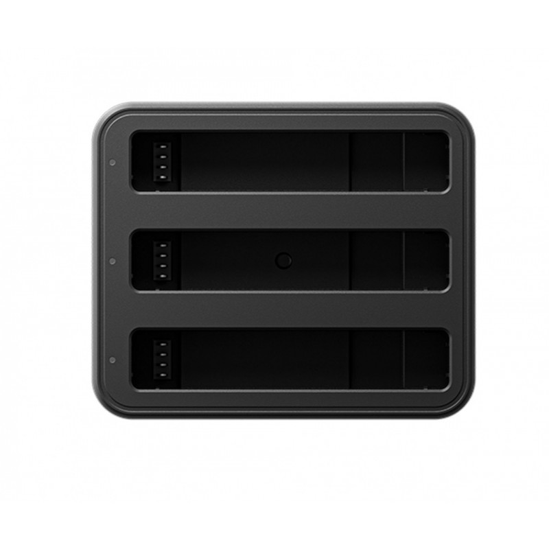 Nabíjecí hub pro tři baterie pro kameru Insta360 X4. Hub nabije 2290 mAh akumulátor za 43 minut (za 26 minut na 80%). Váha: 109g Rozměry: 75 x 62 x 34 mm