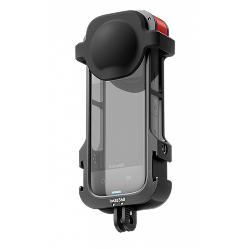 Rámeček pro uchycení příslušenství ke kameře Insta360 X4. Rám chrání tělo a objektivy kamery. Na obou stranách je drážka pro sáňky (Cold shoe) a na spodní straně je multifunkční adaptér - 1/4 palcový závit nebo vidlice. V balení rámeček na X4, ochrana objektivu.