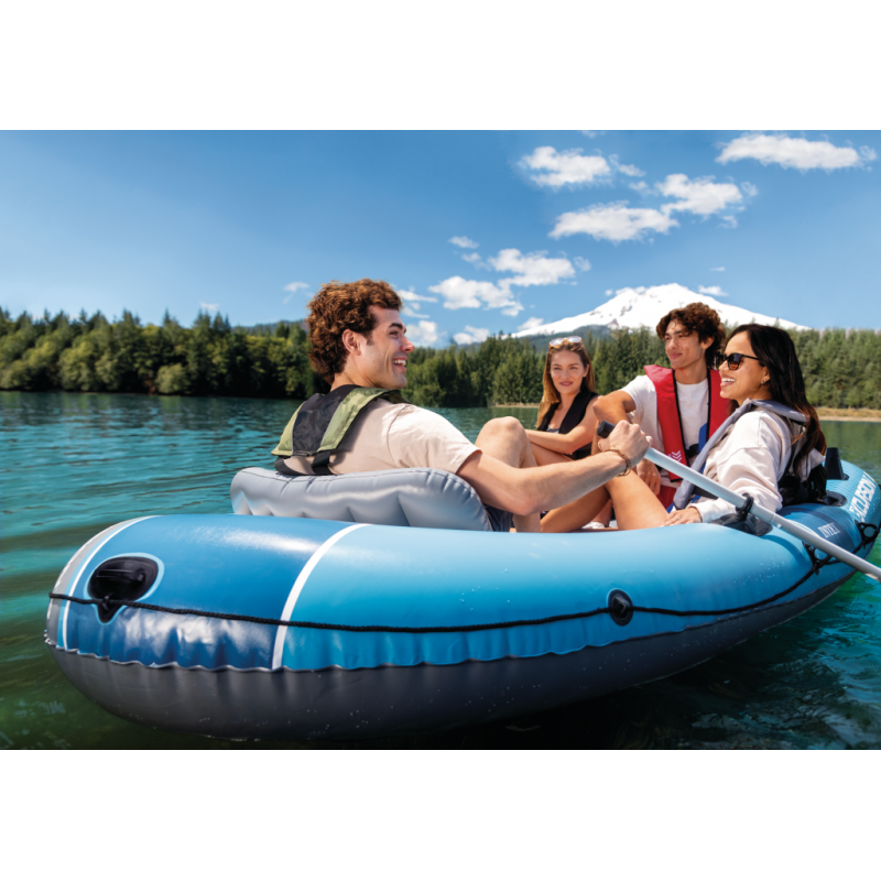INTEX Excursion 4 Boat 66324NP je kvalitní nafukovací člun pro 4 osoby, který nabízí ideální kombinaci odolnosti, stability a komfortu. Díky konstrukci se 3 vzduchovými komorami a použití pevného SuperStrong™ PVC materiálu je člun mimořádně odolný vůči poškození i náročným podmínkám na vodě. Nafukovací podlaha s I-nosníkem zajišťuje pevnost a pohodlí při delším používání, což oceníte při rybaření i rekreačních výletech.
