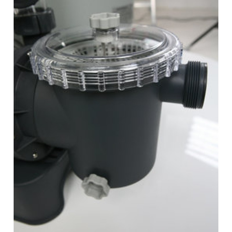 Velký předfiltr zabraňuje vniknutí hrubých nečistot. Tím je nejen chráněno filtrační čerpadlo před poškozením, ale také se zmírňuje zatížení filtrace. Redukce přípravků péče o bazén je jednou z výhod spojených s produktem.