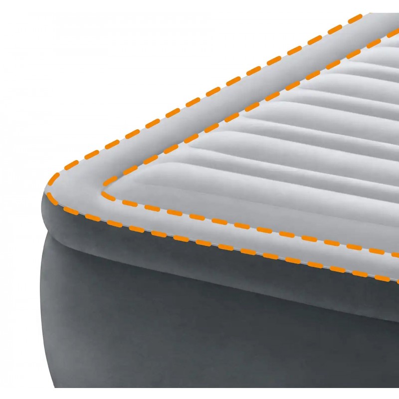 Nafukovací postel INTEX Comfort-Plush Elevated je navržena tak, aby poskytovala maximální pohodlí během spánku. Díky tisícům pevných polyesterových vláken uvnitř konstrukce si postel zachovává svůj tvar a poskytuje optimální oporu těla, zatímco měkký velurový povrch zajišťuje příjemný pocit při ležení. Zesílená konstrukce, horizontální komory a pevné okraje přispívají k vysoké stabilitě a dlouhé životnosti bez prohýbání. Vestavěná elektrická pumpa QuickFill® (220–240V) umožňuje nafouknutí i vyfouknutí během přibližně 4 minut, takže je postel připravena k použití bez námahy a po složení nezabírá téměř žádné místo.