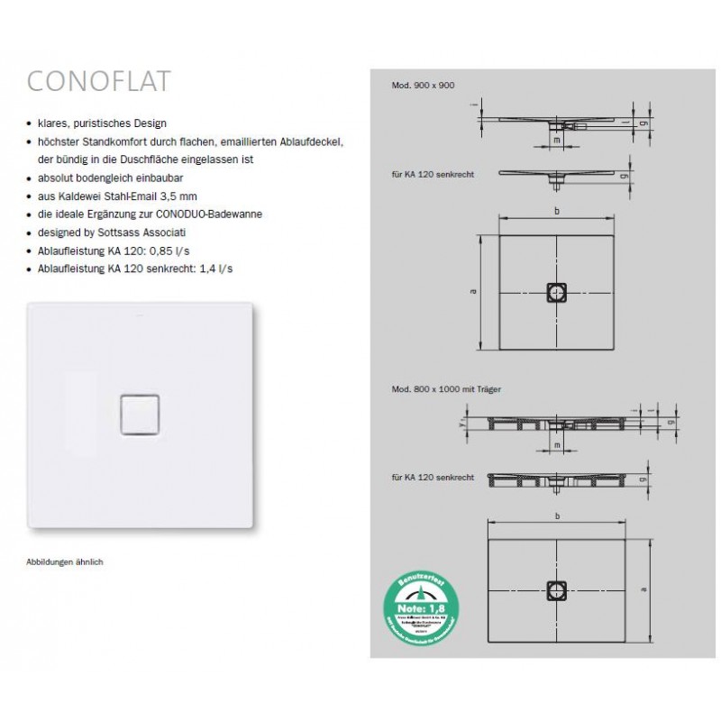 Kaldewei CONOFLAT 784-2 sprchová vanička 90 x 100 x 2,3 cm s nosičem 465448040001CONOFLAT sprchová vanička polystyrénovým nosičem.