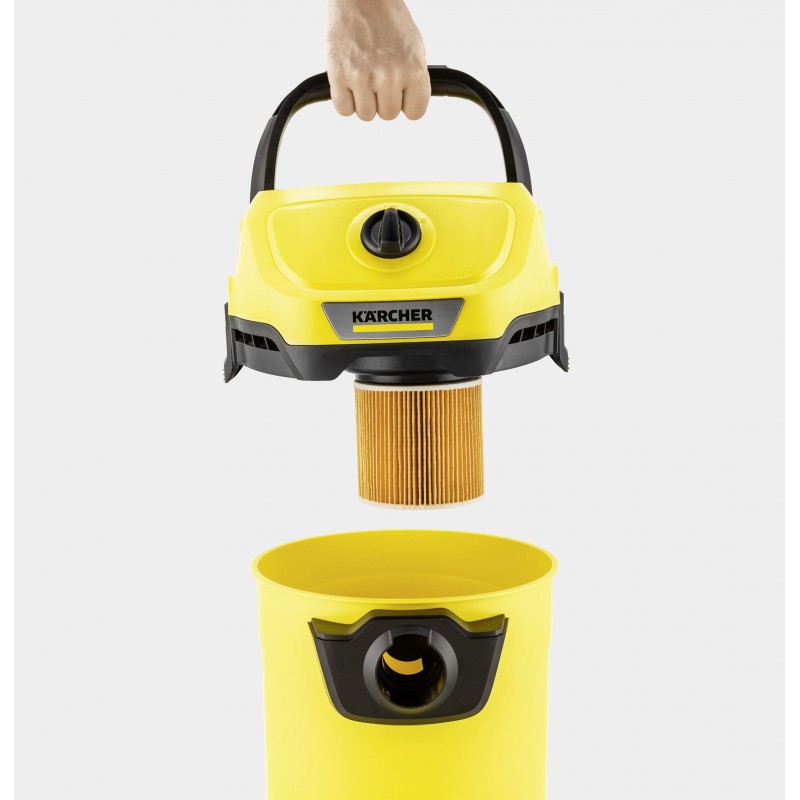 Vysávání, které nezná hranice: bateriový vysavač na mokré a suché vysávání WD 3-18, který je součástí 18 V bateriové platformy Kärcher Battery Power a nabízí maximální flexibilitu, kompaktní design a svobodu pohybu. Přístroj dokonale kombinuje 2 metry dlouhou sací hadici a klipsovou podlahovou hubici a dokáže během okamžiku odstranit mokré, jemné i hrubé nečistoty. Zařízení je dále vybaveno robustní a nárazuvzdornou plastovou nádobou o objemu 17 litrů, jednodílným kartušovým filtrem a také fleecovým filtračním sáčkem. Skladování sací hadice šetří místo; jednoduše jej zavěste na hlavu zařízení. Mezi další funkce patří praktická funkce fukaru pro oblasti, kde není možné vysávání, odkládací prostor na nářadí a drobnosti, otočný spínač pro snadné zapnutí a vypnutí přístroje, ergonomicky tvarované madlo pro přenášení a také "Pull & Push" uzamykací systém, který umožňuje snadné otevírání a zavírání nádoby. Parkovací poloha na nárazníku umožňuje rychlé a pohodlné uložení trubic a podlahové hubice při krátké přestávce při práci. Baterie a nabíječka nejsou součást balení.