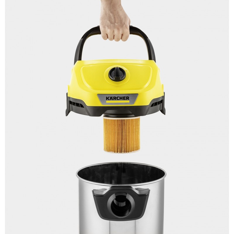 Žádný kabel. Bez omezení: bateriový vysavač na mokré a suché vysávání WD 3-18 S, který je součástí 18 V bateriové platformy Kärcher Battery Power nabízí maximální flexibilitu, kompaktní design a svobodu pohybu. Zařízení dokonale kombinuje sací hadici o délce 2 metry a klipsovou podlahovou hubici a dokáže během okamžiku odstranit mokré, jemné i hrubé nečistoty. Zařízení je dále vybaveno robustní a nárazuvzdornou nádobou z nerezové oceli o objemu 17 litrů, jednodílným kartušovým filtrem a také fleecovým filtračním sáčkem. Skladování sací hadice šetří místo; jednoduše jej zavěste na hlavu zařízení. Mezi další funkce patří praktická funkce fukaru pro oblasti, kde není možné vysávání, odkládací prostor na nářadí a drobnosti, otočný spínač pro snadné zapnutí a vypnutí přístroje, ergonomicky tvarované madlo pro přenášení a také "Pull & Push" uzamykací systém, který umožňuje snadné otevírání a zavírání nádoby. Parkovací poloha na nárazníku umožňuje rychlé a pohodlné uložení trubic a podlahové hubice při krátké přestávce při práci. Baterie a nabíječka nejsou součást balení.