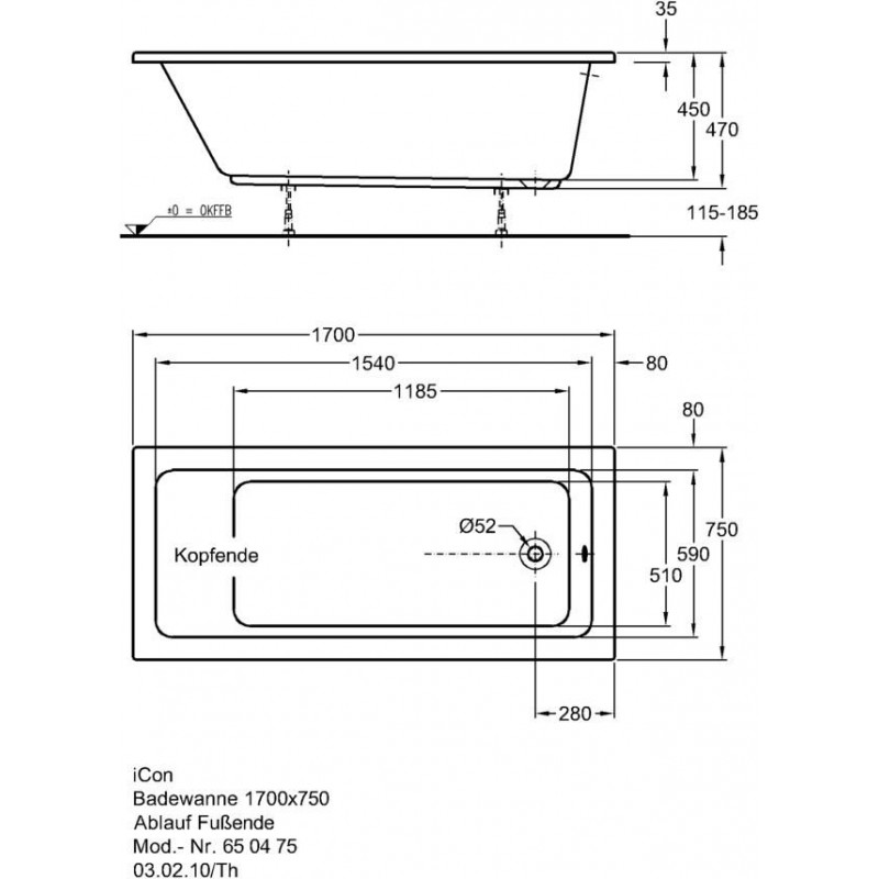 KERAMAG Icon pravoúhlá vana 170 x 75 x 45 cm odtok boční 650475pravoúhlá vana, bílá