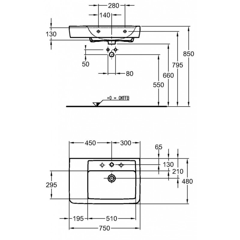 KERAMAG Renova Nr. 1 Plan umyvadlo asymetrické 75cm, odkládací plocha vlevo 122175000asymetrické umyvadlo