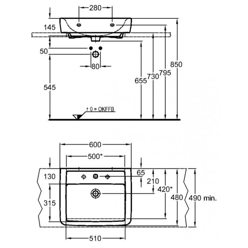 KERAMAG Renova Nr. 1 Plan umyvadlo na desku, s otvorem 60 x 48 cm 225160000umyvadlo na desku