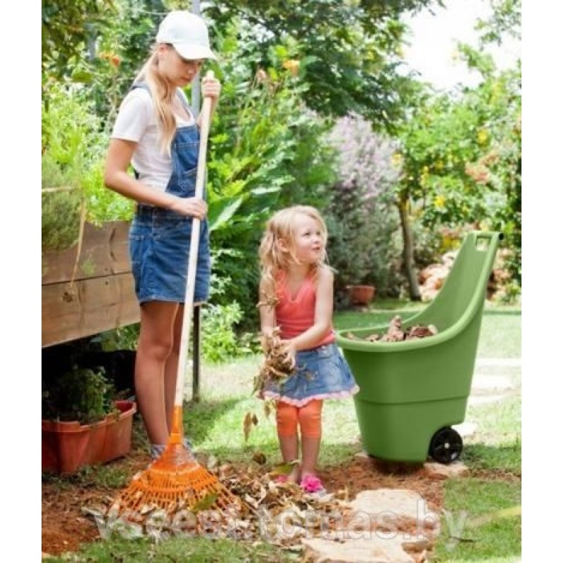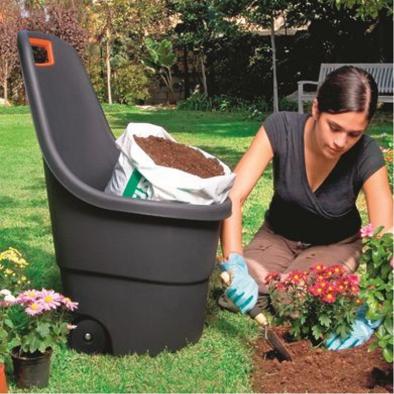EASY GO vozík funguje jako funkční kolečko s 55L kapacitou, je velmi lehký a praktický. Dobře promyšlená konstrukce a ergonomický grip činí náklad podstatně lehčí. Tento produkt je ideální pro práci v zahradě, sklepech a domácnostech. Vyrobený z plastového materiálu odolného proti vnějším účinkům a povětrnostním vlivům.