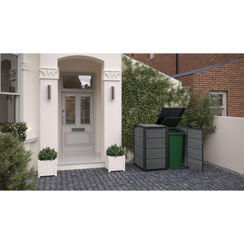 Hledáte praktické a elegantní řešení pro uskladnění a třídění odpadu? Skříňka na popelnice HIDE AWAY 2×240L je ideální volbou pro dvě popelnice o objemu 240 litrů. Tento kvalitní venkovní box pomáhá zakrýt popelnice, udržet pořádek a zároveň přidává stylový prvek na vaši zahradu nebo před dům.