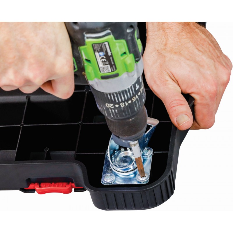 Ideální pro domácí instalatérské práce, údržbu auta a další manuální činnosti – všechny nástroje máš vždy po ruce a zároveň můžeš snadno přesouvat své boxy Stack'N'Roll po dílně.