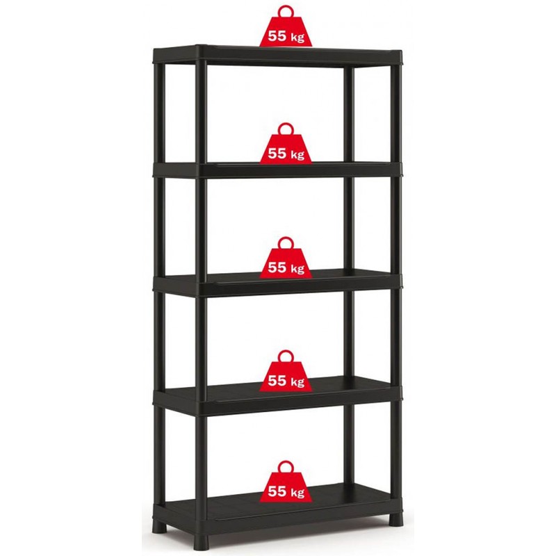 Plastový regál PLUS 90/40/5 – 5 polic, 90 × 40 × 182 cm, nosnost 275 kg