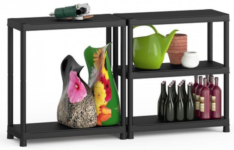 Plastový regál KIS PLUS 90/40/5 je praktické řešení pro garáže, sklepy, dílny i další úložné prostory. Díky modulární konstrukci, kterou lze složit do horizontální i vertikální polohy, nabízí flexibilní uspořádání přesně podle vašich potřeb. Robustní konstrukce zajišťuje stabilitu a bezpečné uložení nářadí, boxů či jiného vybavení. Každá z pěti polic unese až 55 kg, takže celková nosnost regálu je 275 kg. Regál je vhodný pro vnitřní použití a jeho montáž nevyžaduje žádné nářadí.