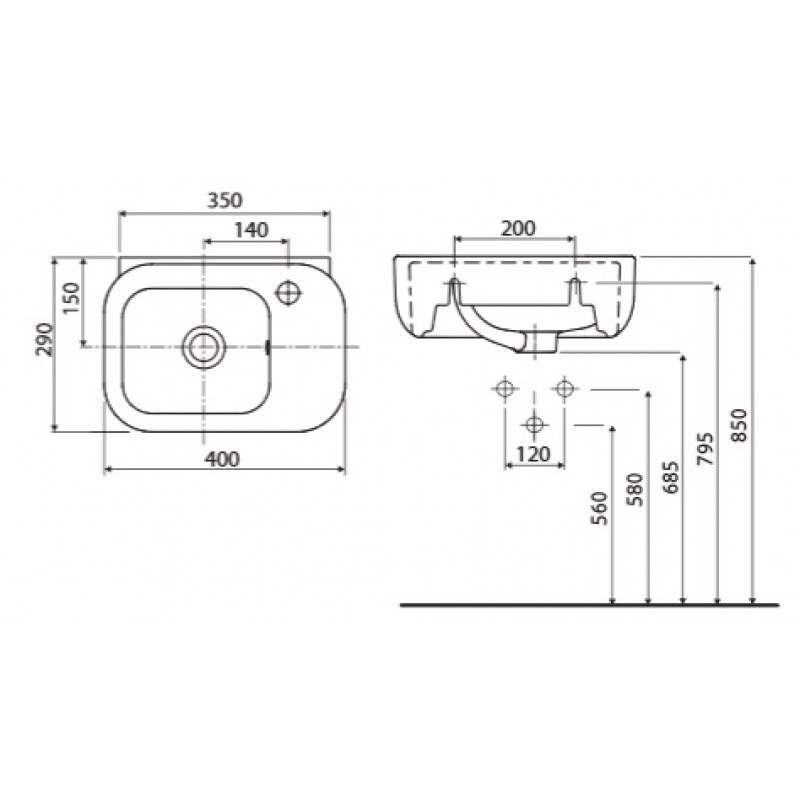 KOLO Ego by Antonio Citterio umyvadlo 40 x 29 cm, s otvorem pro baterii vpravo, s přepadem K12140000- barva: bílá