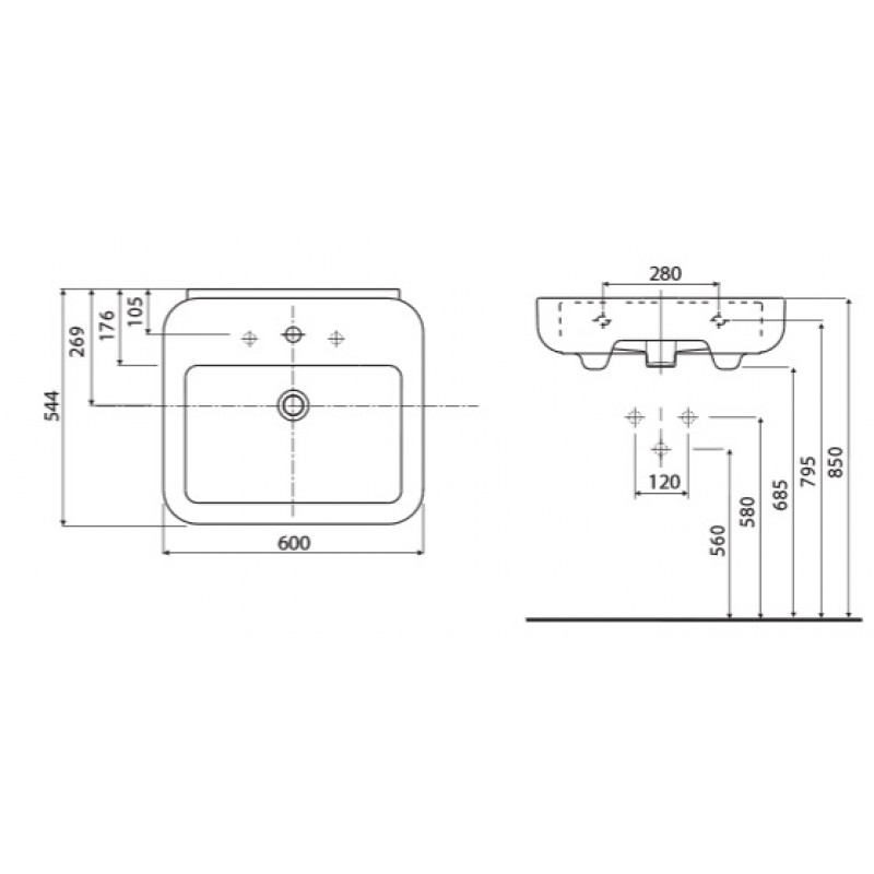 KOLO Ego by Antonio Citterio umyvadlo 60 x 54,4 cm, s otvorem pro baterii, s přepadem K11162000
