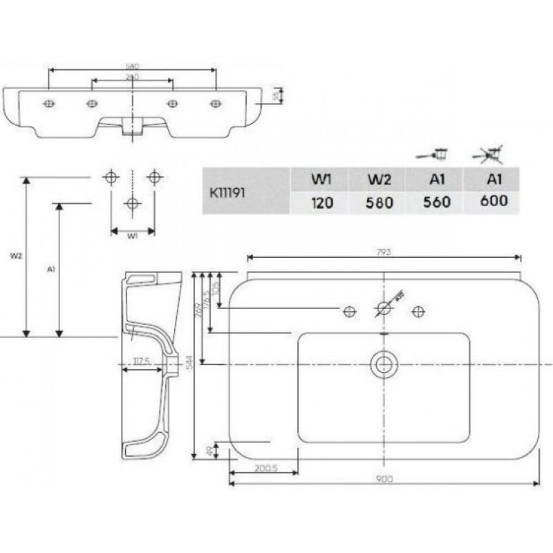 KOLO Ego by Antonio Citterio umyvadlo 90x54,4 cm K11191Umyvadlo s otvorem pro baterii 90 x 54,4 cm
