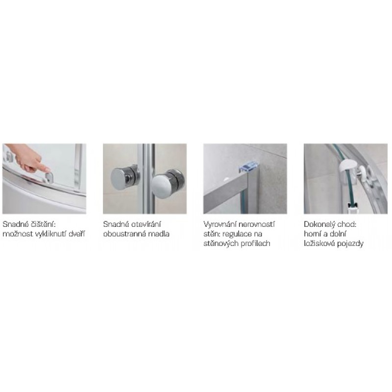 KOLO First čtvrtkruhový sprchový kout 90 x 90 cm, posuvné dveře, sklo čiré ZKPG90222003Rozměrové možnosti: 875 - 895 mm