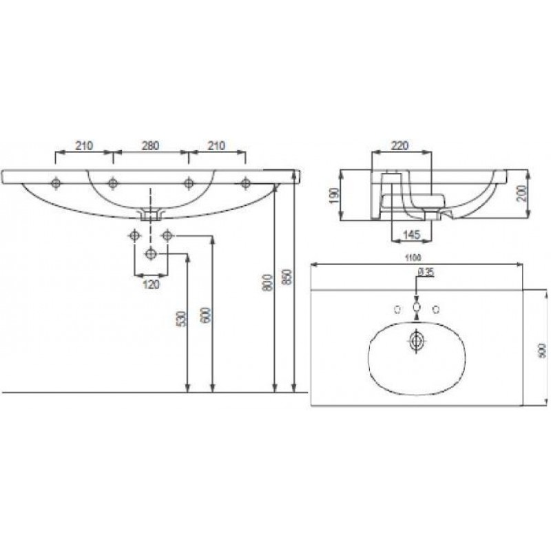 KOLO Ovum by Antonio Citterio umyvadlo 110x54,4 cm L41110Umyvadlo s otvorem pro baterii 110 x 54,4 cm.