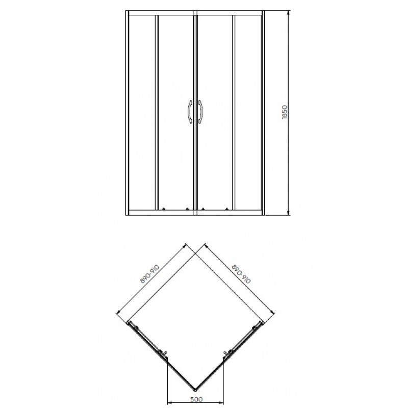 KOLO Rekord čtvrtkruhový sprchový kout 90 x 90 cm, posuvné dveře, čiré sklo PKPG90222003Technické informace