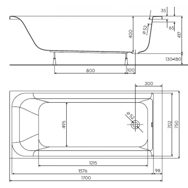 KOLO Rekord pravoúhlá vana 170 x 75 cm, Antislide XWP1671101- materiál: akrylát