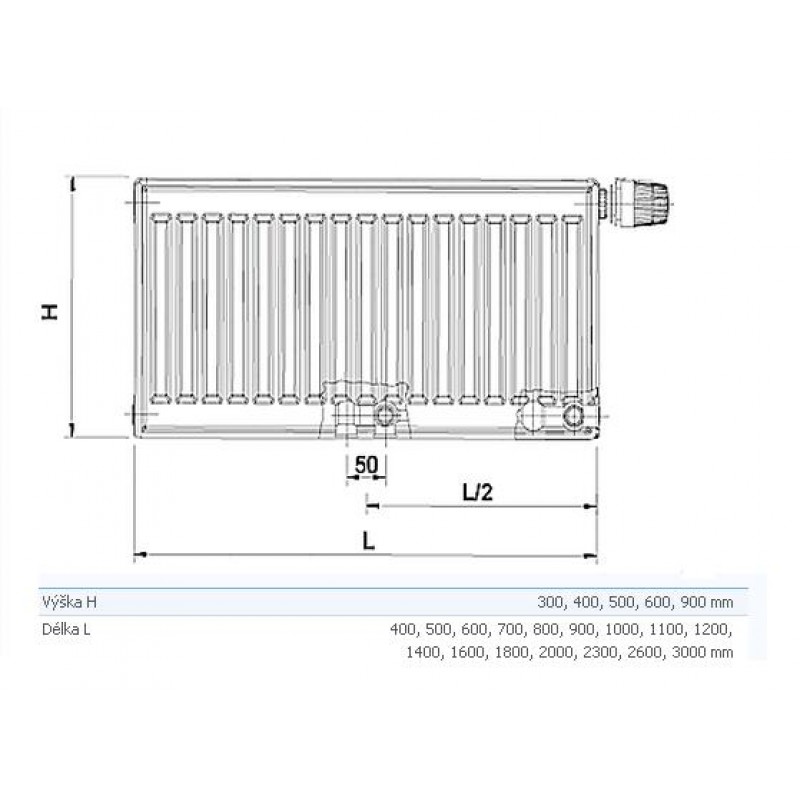 KORADO RADIK deskový radiátor typ VKM 33 400 / 1800 33-040180-G0-10