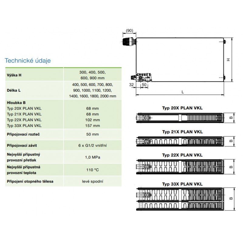 Model RADIK X-CONTROL PLAN VKL je deskové otopné těleso s hladkou čelní deskou v provedení X-CONTROL a v provedení VENTIL KOMPAKT, které umožňuje levé spodní připojení na otopnou soustavu s nuceným oběhem. Ze zadní strany nejsou navařeny příchytky.