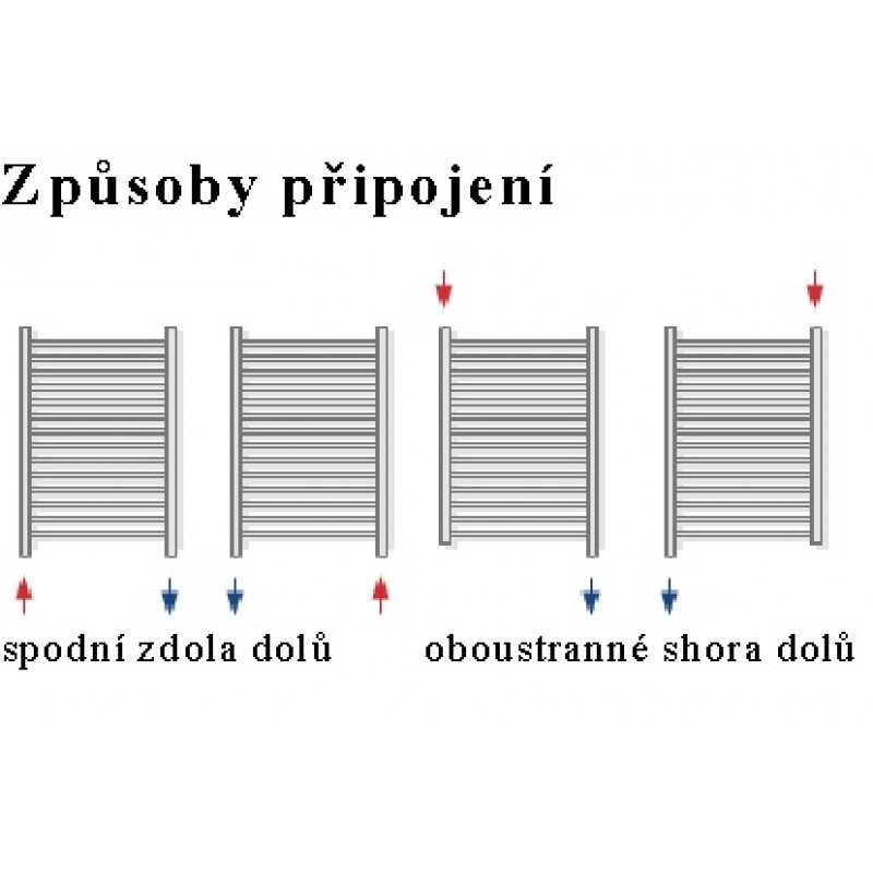 Připojení otopného tělesa: spodní zdola dolů, oboustranné shora dolů