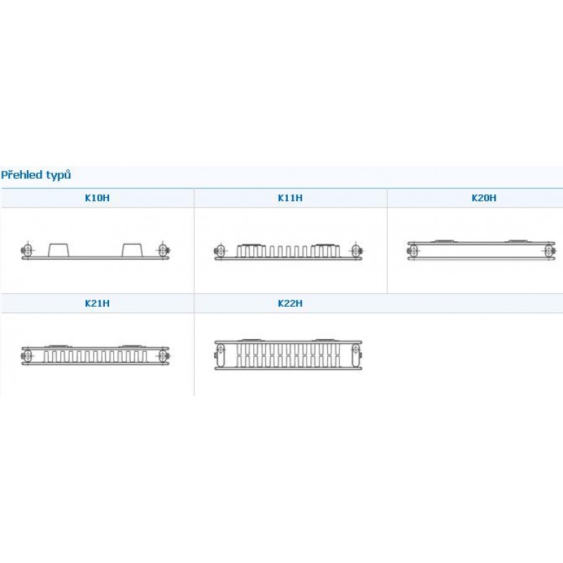 Je určena pro dvoutrubkové otopné soustavy s nuceným oběhem teplonosné látky, otopné profily jsou orientovány vodorovně. Připojení na otopnou soustavu je vždy spodní zdola dolů s připojovací roztečí odvozenou z délky L (příklad označení K11H). Je vybavena 2 spodními vývody s vnitřním závitem G 1/2", odvzdušňovacím ventilem a zaslepovací zátkou se závitem G 1/4". Typy 10 a 11 jsou dodávány s plným horním krytem, typy 20, 21, 22 s horní krycí mřížkou.