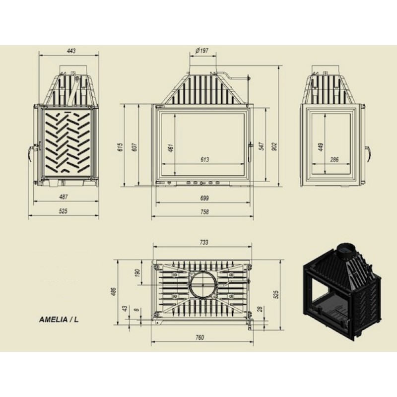 KRATKI AMELIA/L 25 kW krbová vložka teplovzdušná, levé skloVýkon 25kW