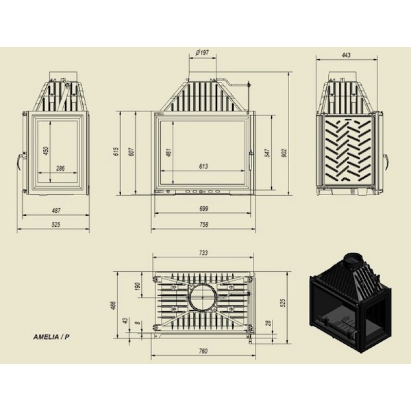 KRATKI AMELIA/P 25 kW krbová vložka teplovzdušná, pravé sklo