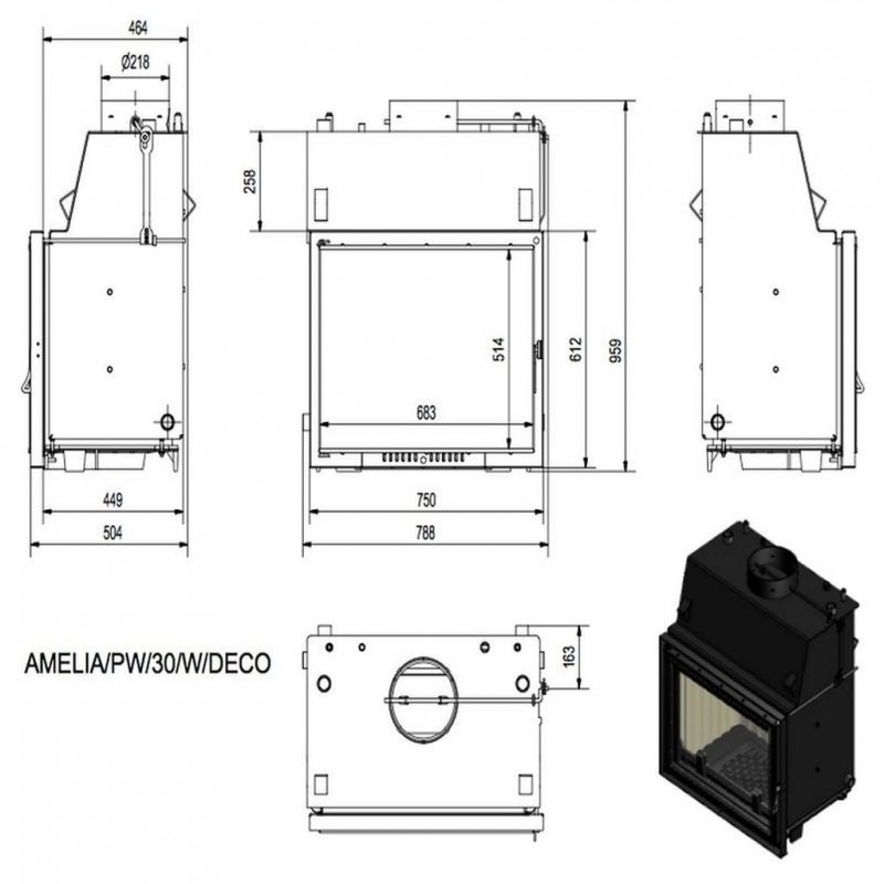 KRATKI AMELIA/PW/30/W/DECO krbová vložka teplovodní, rovné sklo, s chladící smyčkouVýkon nominální: 30 kw