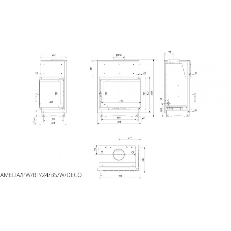 KRATKI AMELIA/PW/BP/24/BS/W/DECO krbová vložka teplovodní, pravé sklo, s chladící smyčkouVýkon nominální: 24 kw