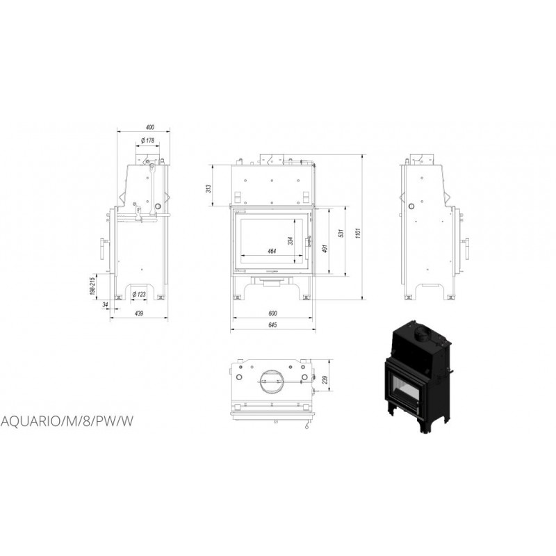 KRATKI AQUARIO/M/8/PW/W krbová vložka teplovodní, rovné sklo, s chladící smyčkou
