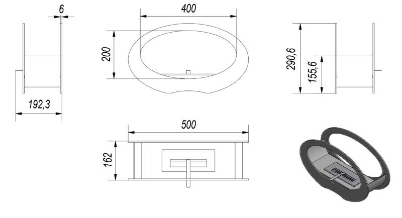 Biokrb oválneho tvaru a formy, který harmonicky zapadá do návrhu moderních interiérů. Je vhodnou dekorací jak v bytě tak na terase.Biokrb je zařízení velmi jednoduché k montáži a pohodlné v používání, a jeho obsluha se omezuje na zásobení biopalivem. K instalaci a používání biokrbu není nutná komínová instalace, nevyžadují se žádná povolení. Biokrb lze pověsit na stěnu, umístit v libovolném místě nebo obestavit v individuálně zaprojektované konstrukci, dle druhu krbu.