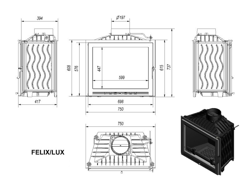 KRATKI FELIX/LUX 16 kW krbová vložka teplovzdušná, luxusní skloVýkon: 16 kW