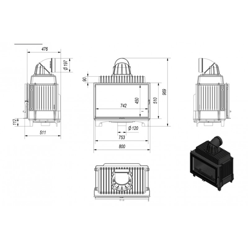 KRATKI FRANEK/14/PF krbová vložka teplovzdušná, rovné skloVýkon: 14 kW