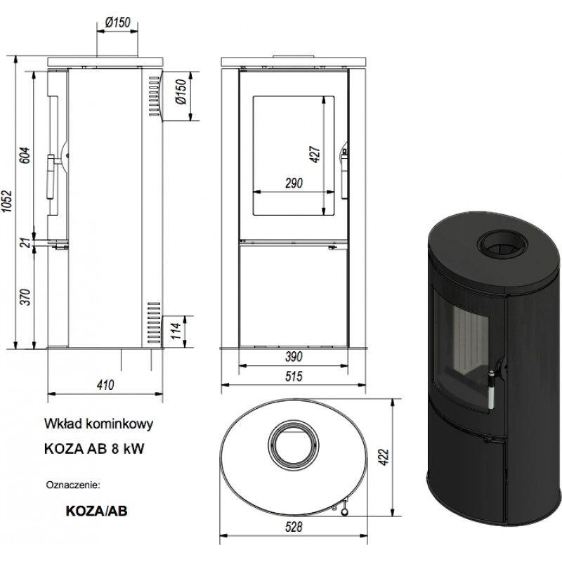 KRATKI Koza AB, 8kW krbová kamna teplovzdušnáKamna jsou odlišná svými moderními oblými tvary a vyrobena z kvalitních materiálů.