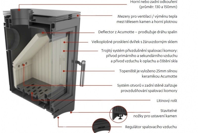 Vývod kouřovodu: horní, zadní (po dokoupení záslepky horní desky)