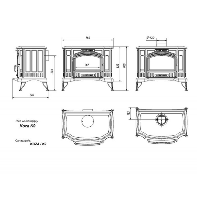 KRATKI Koza K9/130, 10kW krbová kamna teplovzdušnáKamna vyrobená z kvalitní litiny zaujmou klasickým designem, který je zvýrazněný šikmým prosklením po obou stranách dvířek. Tato varianta prostorově zvětší efekt plamene.