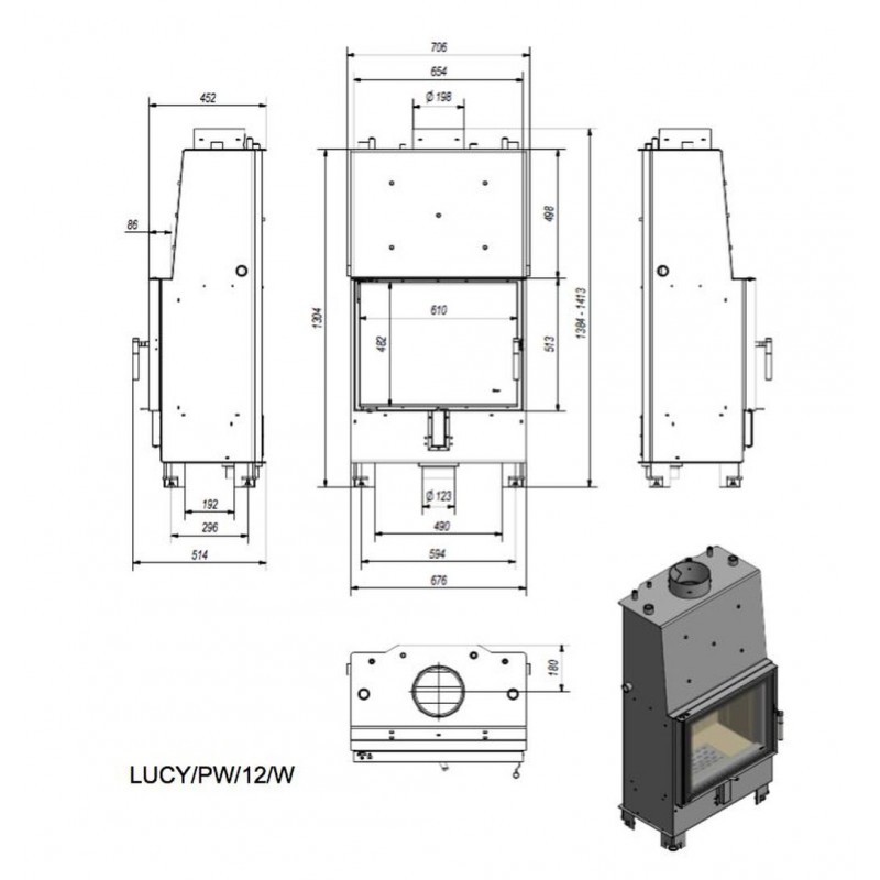 KRATKI LUCY/PW/12/W krbová vložka teplovodní, rovné sklo, s chladící smyčkouS externím přívodem vzduchu