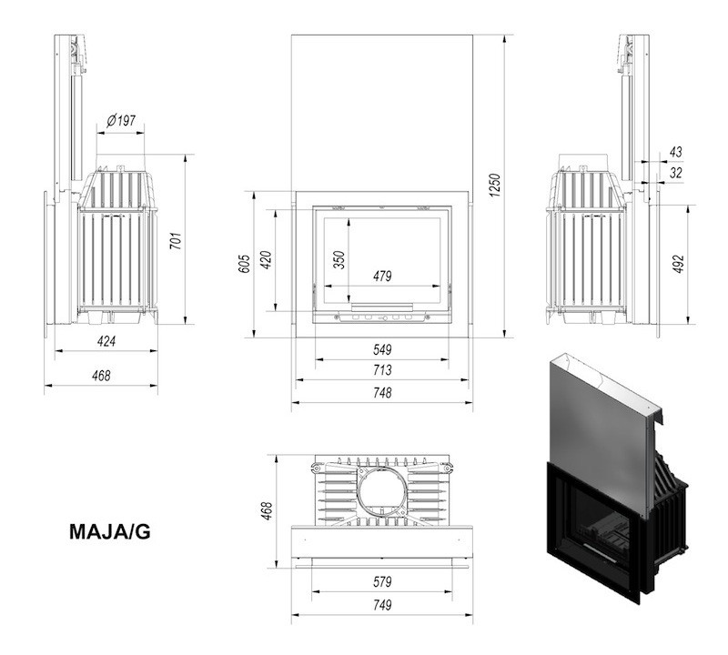 KRATKI MAJA/G 12 kW krbová vložka teplovzdušná, výsuvné skloVýkon: 12 kW