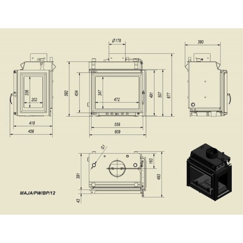 KRATKI MAJA/PW/BP/12W krbová vložka teplovodní, pravé sklo, s chladící smyčkouZáruka 5 let