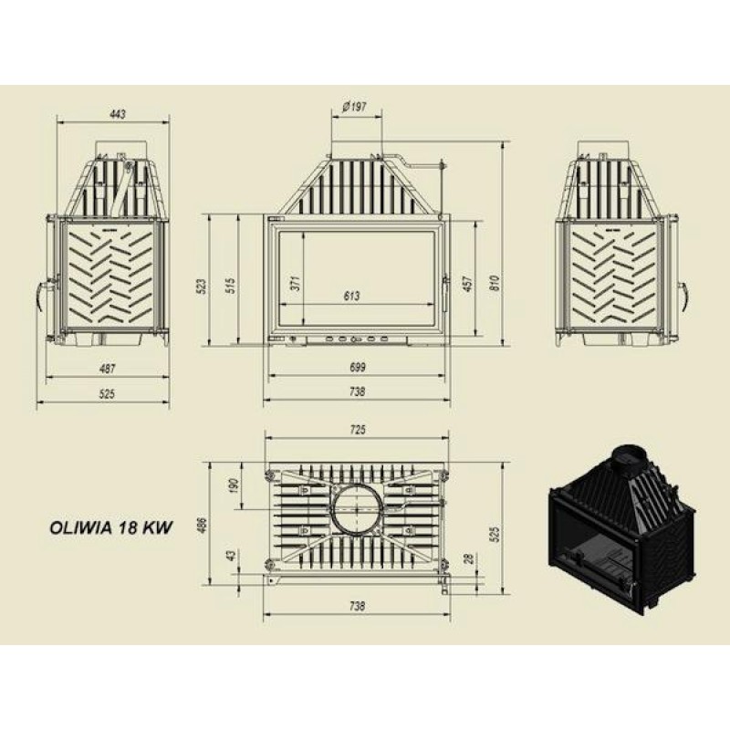 KRATKI OLIWIA/PF 18 kW krbová vložka teplovzdušnáJmenovitý výkon: 18 kW